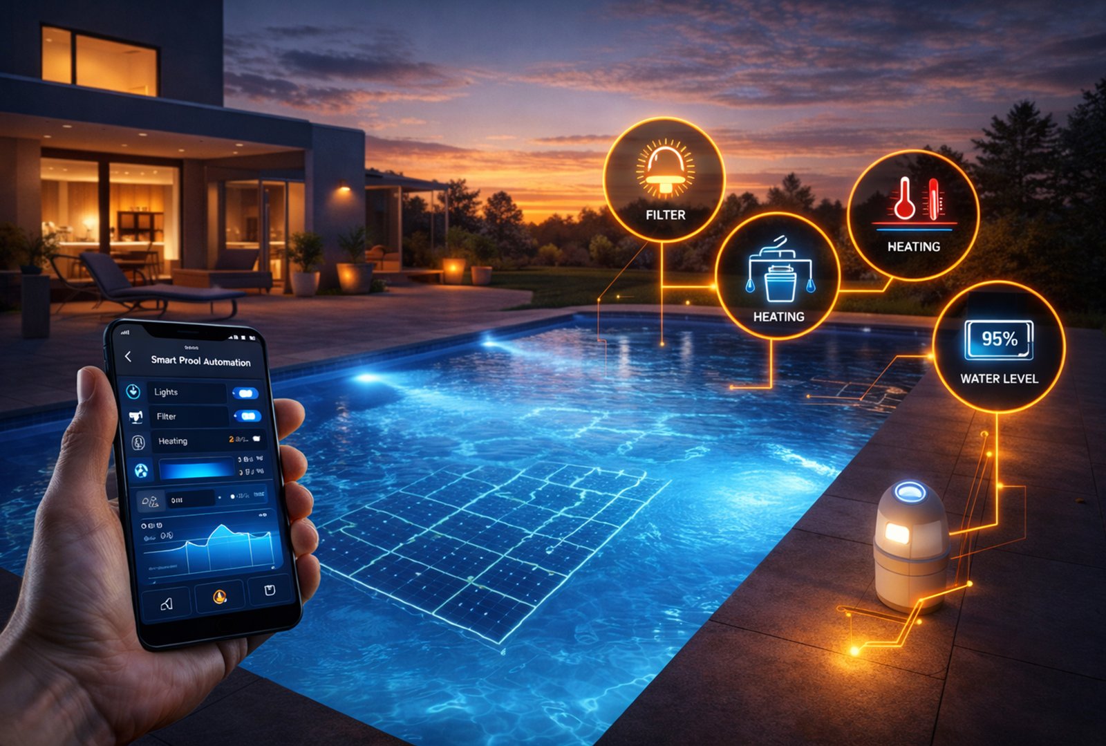 Automate pool lighting, filtration, heating, and water management with intelligent controls for enhanced convenience and maintenance efficiency.